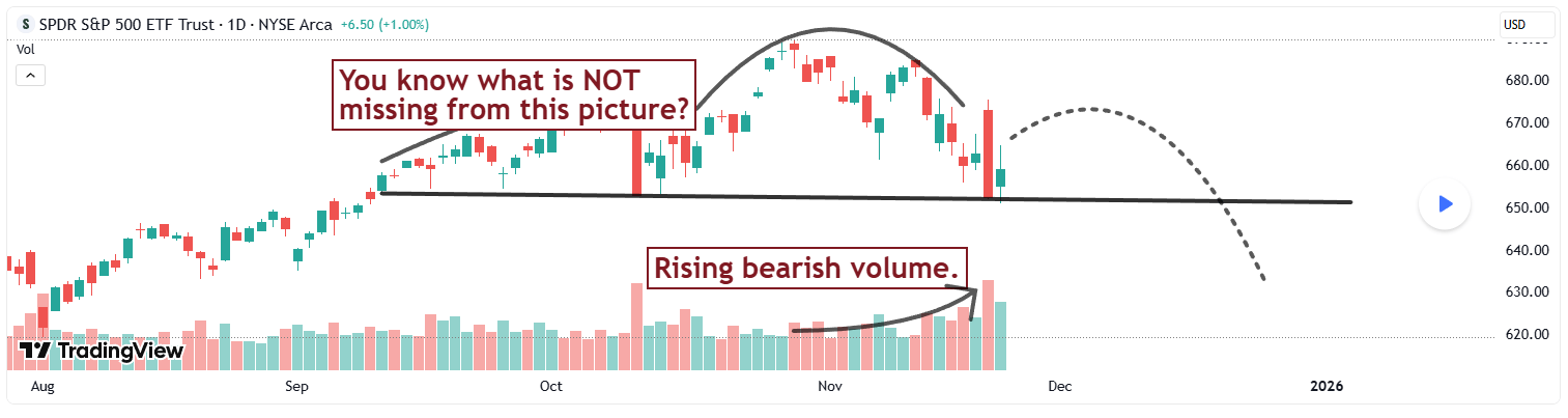 If the market fails to make a new high but then makes a new low price by closing below the support level, that is a very troublesome signal for investors.